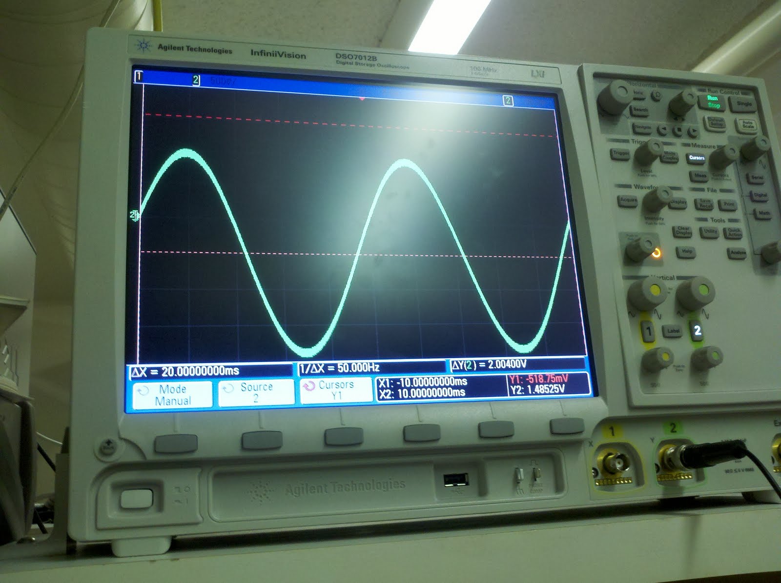 We experimented on the inverting opamp and summing amplifier. Two limitations that we examined were the non-ideality of zero differential voltage input, as well as the output voltage limitations. Below are some oscilloscope pictures that show what happened when we increased the input voltage until saturation begins to occur: